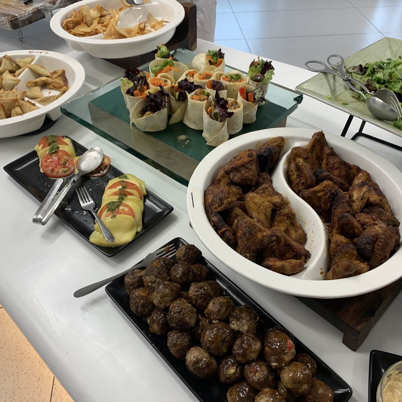 レストランとしてはビュッフェスタイルでサラダ類、デザート類が壁際にあり、ヤギの丸焼きやライブキッチンでの各種肉類BBQなど非常に見ごたえ、食べごたえありで味付けも美味しく頂けます。