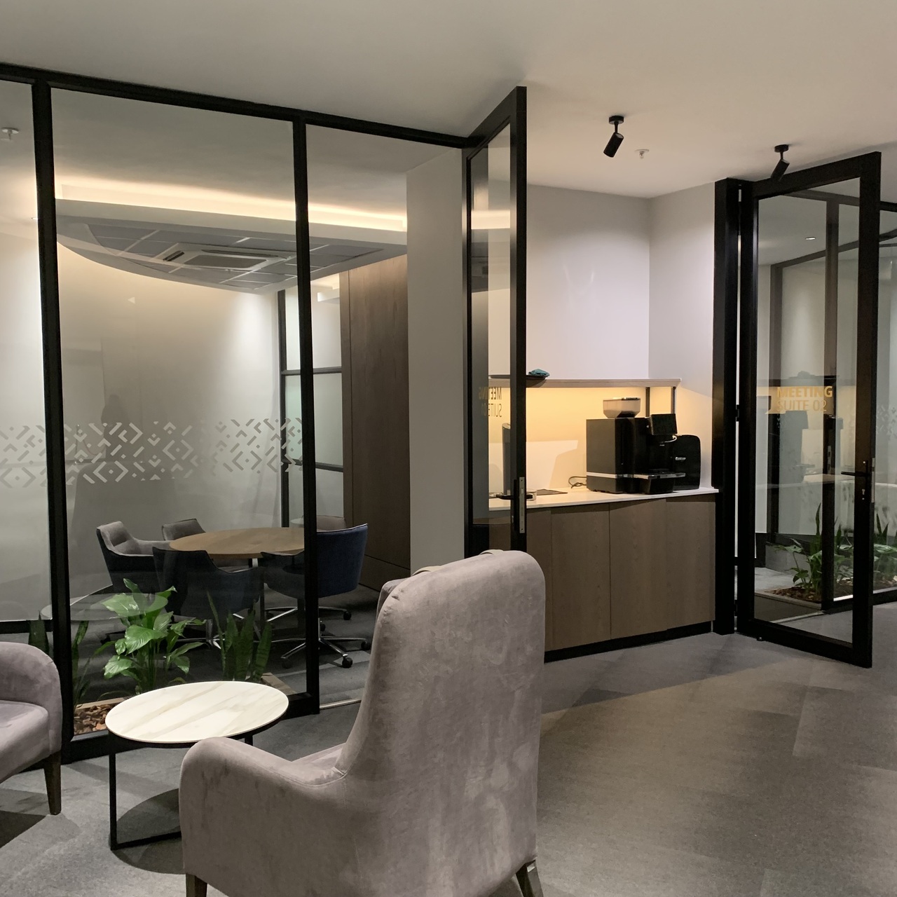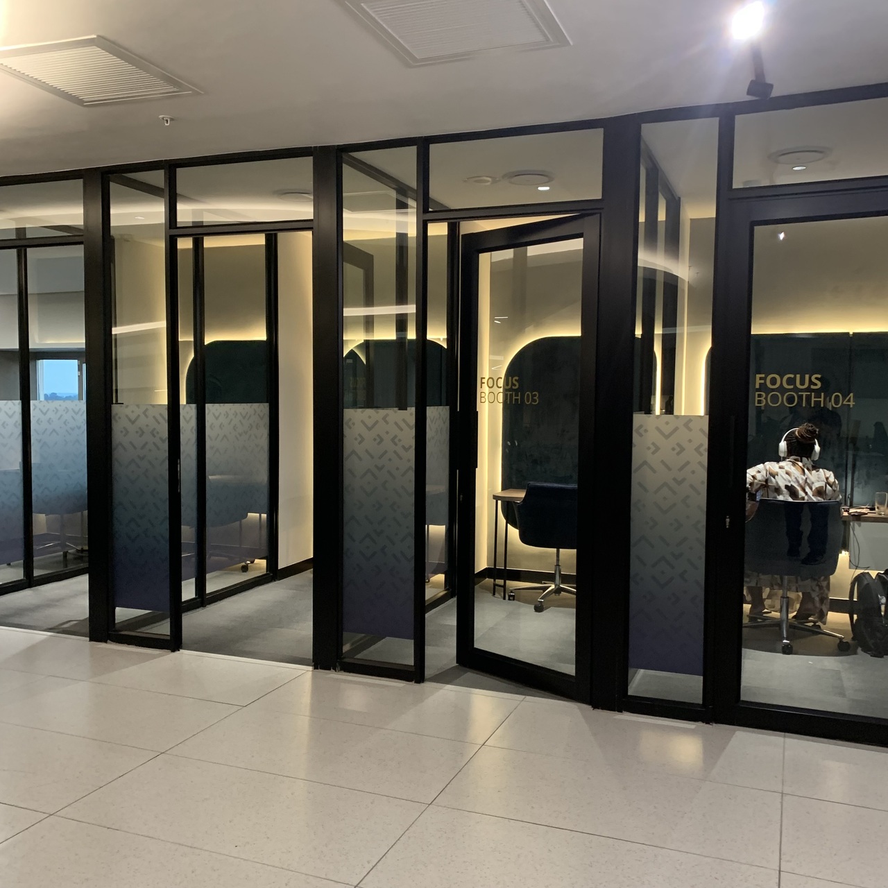 更に進むと少人数にちょうど良さそうなカーテン付きの半個室コーナーやリモートワークができそうな1人用の個室に6人くらいまで入る会議室も数部屋できました。喫煙室もあります。
