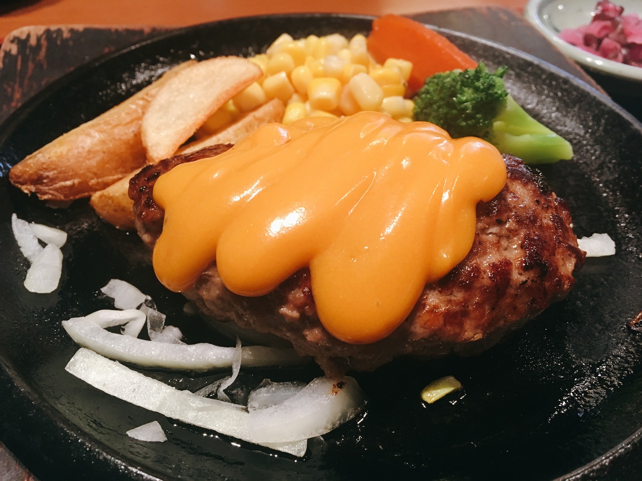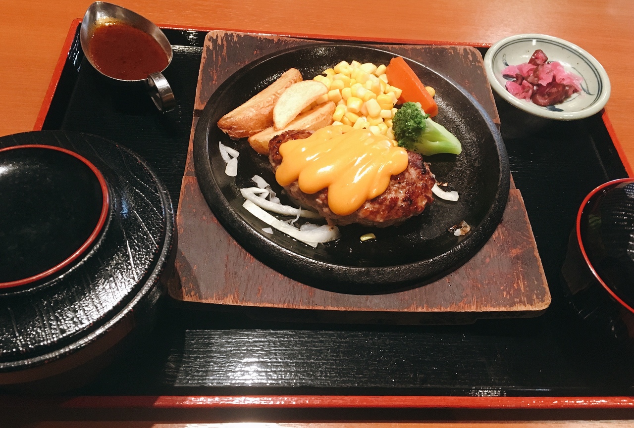 ちょっと小さめのハンバーグでしたが味は美味しかったです🐮