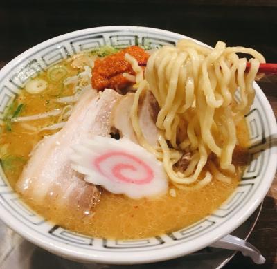 白味噌風味の味噌に少しずつからし味噌を溶かすことでコクと辛さが加わり美味しかったです。麺は中平麺でした。