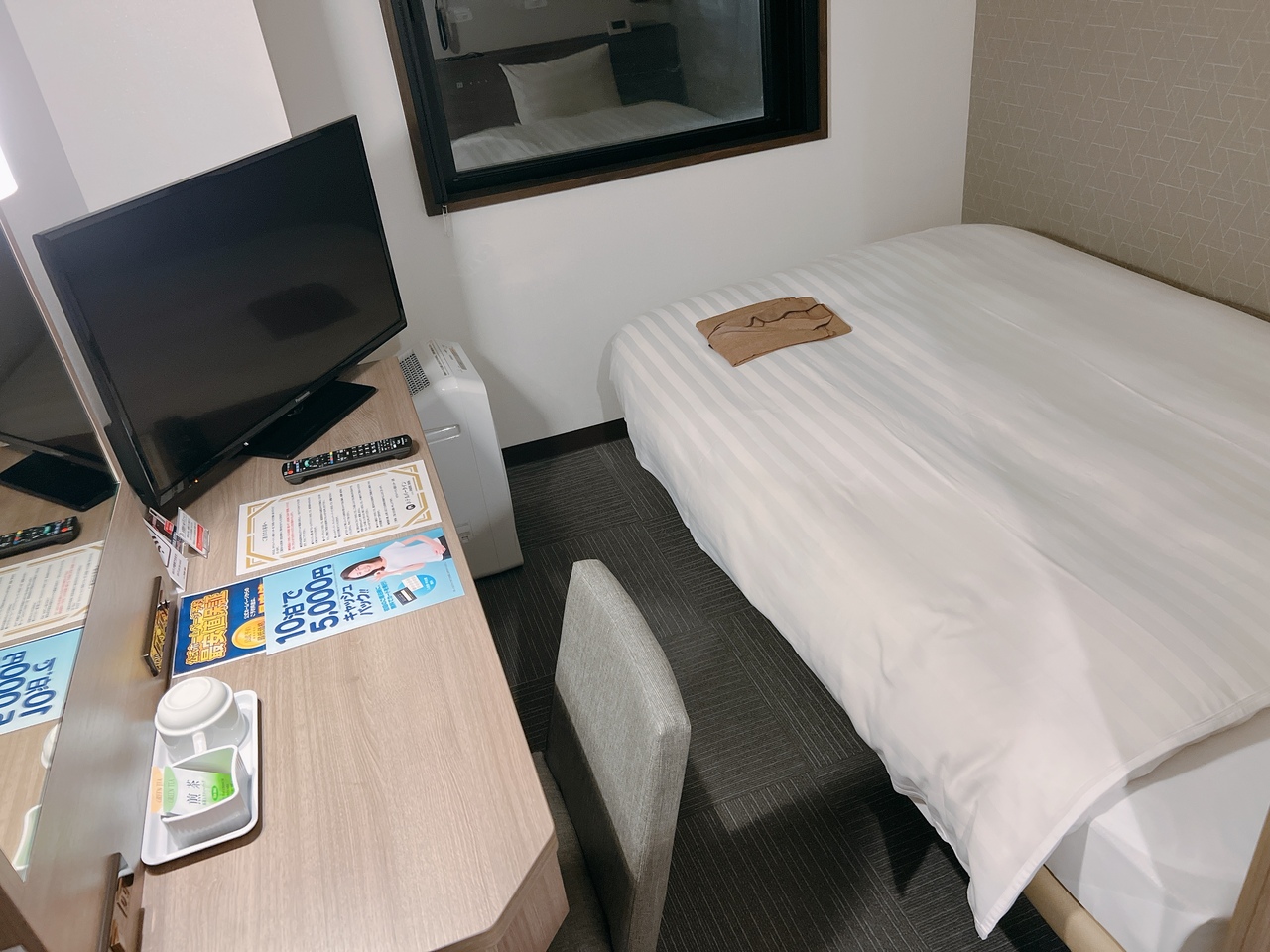 部屋は広くはないですがシングルとしては十分なスペースです。