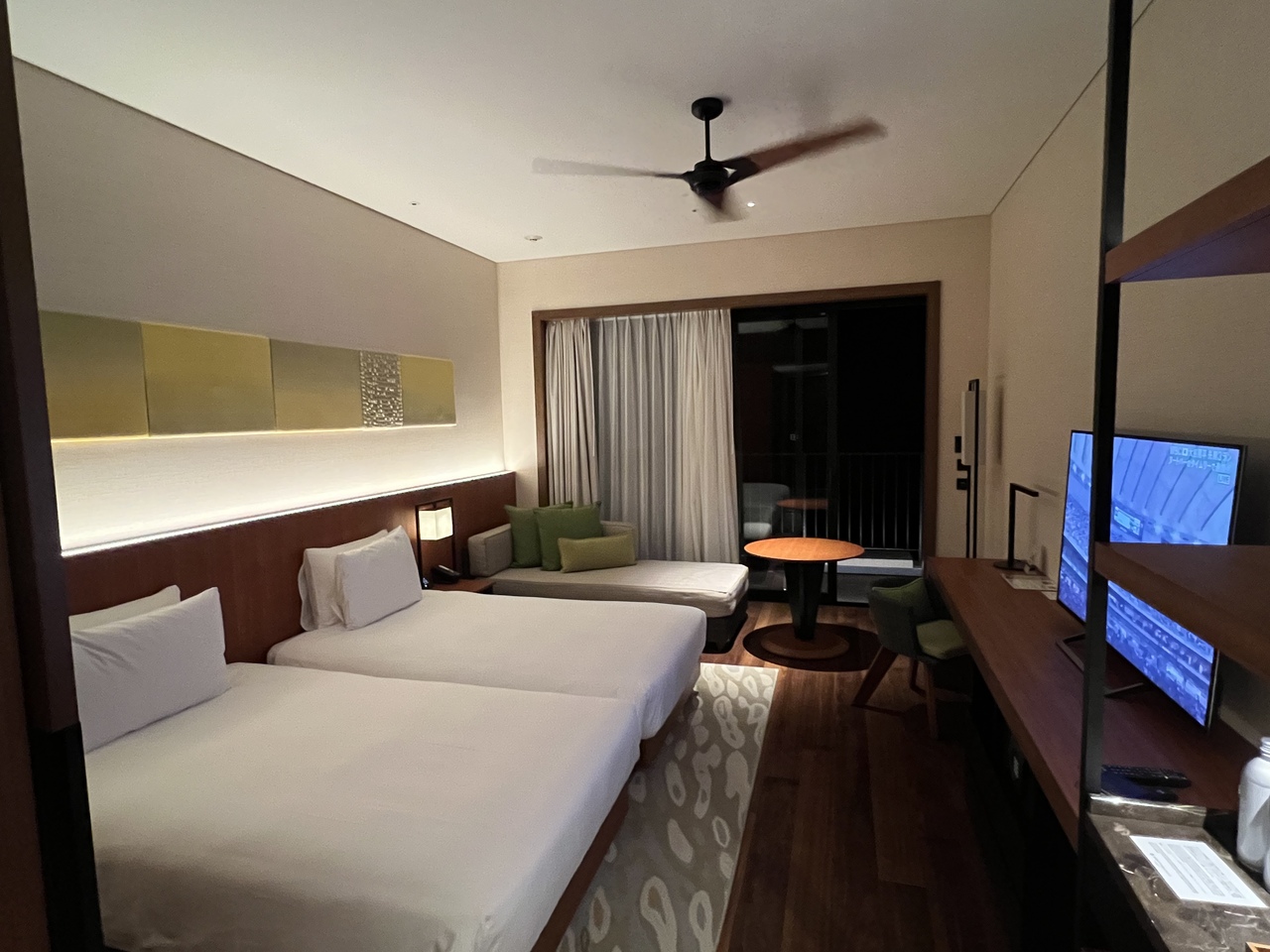 エレベーター(駐車場の出入りも)はカードキーが必要です。部屋は開放感があり静かで窓から見える海も綺麗で沖縄の南国?を感じられます。ベッドサイドや他にもUSB端子あって便利です。ガラス張りのバスタブも175cmの大人が足を伸ばしても充分なサイズで気持ちよく入れました(大浴場はありません)