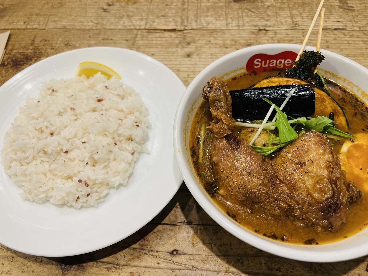 suageというのでチキンが丸ごと揚げて入っているチキンカレースープをオーダーしました。