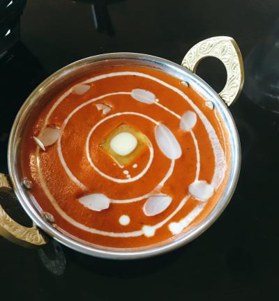 バターチキンカレーを注文しましたがバターとナッツのスライスで綺麗に盛り付けられ美味しかったです。