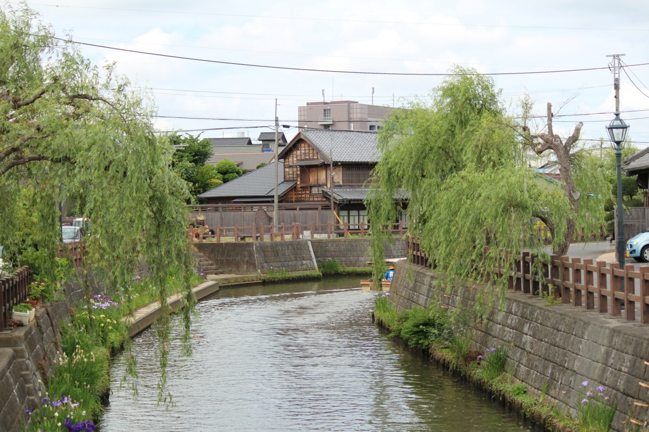 昔ながらの土倉や商家が立ち並ぶ小野川沿いの街並みです。