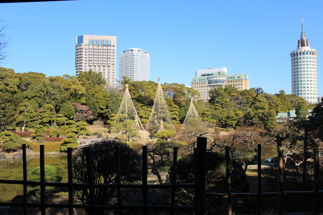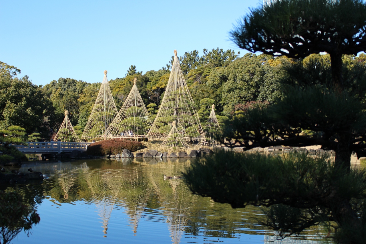 冬は池の周りの木々に雪吊りがしてあって、見事です。