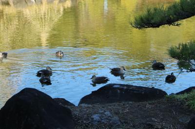 池を中心とした回遊式庭園で、鴨等の野鳥がいました。