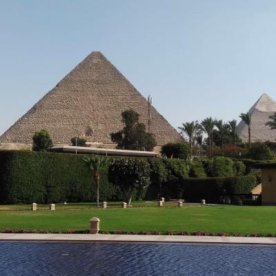 1日中ピラミッドを眺められます。Restaurantもいくつかあり、朝食のカフェからは毎日ピラミッド観れました。ピラミッド見飽きた。日本のサイトからは高いけど、直接予約で安く宿泊できます。- 旅行時期