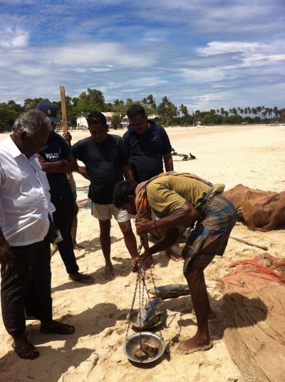 ビーチでは地元の漁師が毎日地引き網漁をしています。