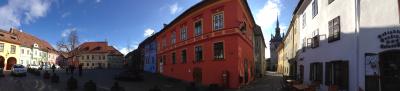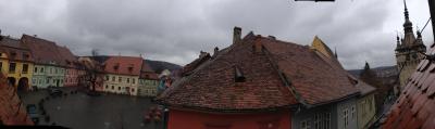 シギショアラの世界遺産の歴史地区のど真ん中にあります。観光にはとても便利です。夜もその辺自由に歩き回れますのでライトアップされた美しい街並みを見ることができます。
