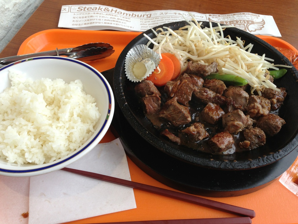 最寄り駅はJR五日市線秋川駅で20分ほど歩けば、イオンモール日の出店3階にあります。おすすめはサービスステーキ180グラム800円です。