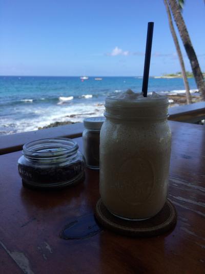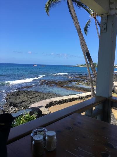 2階の海が見えるテラス席でゆったりと過ごせるので、我が家は直行便でコナ空港からここにきて時差ボケを解消することが多い。