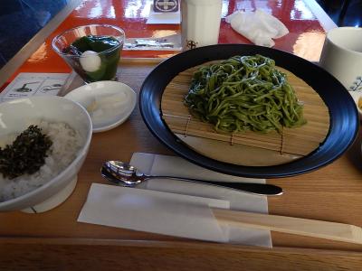 食事もしたかったので茶蕎麦セット(冷)を注文。セットには軽めのちりめんご飯と京漬物にミニ生茶ゼリイが付いた。量はこれぐらいが充分。麺つゆだけでなく塩抹茶や柑橘類が付いてくるので、色々と味を変えて楽しめる。