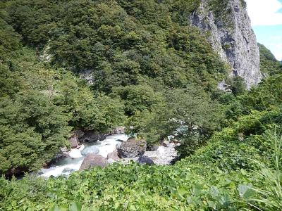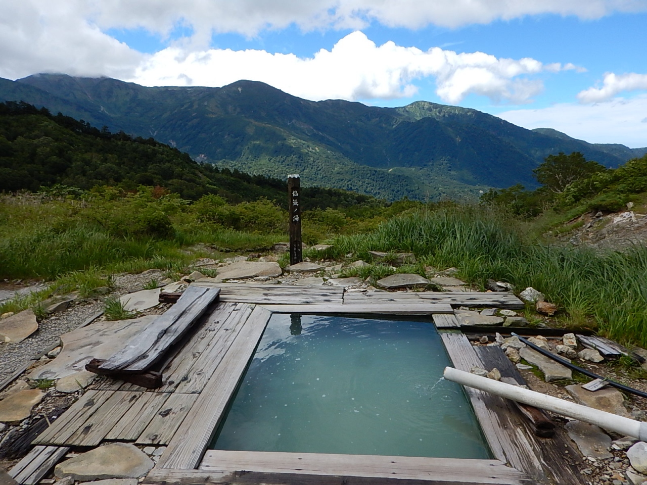 次の仙気の湯は岩場の中にあり湯船も大きく適温。硫黄分も強く感じる。ここで景色を眺めながら入浴。