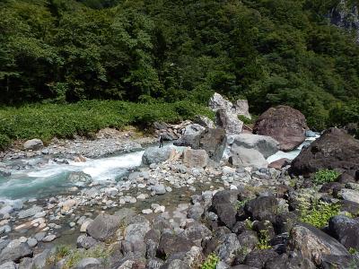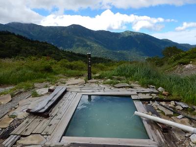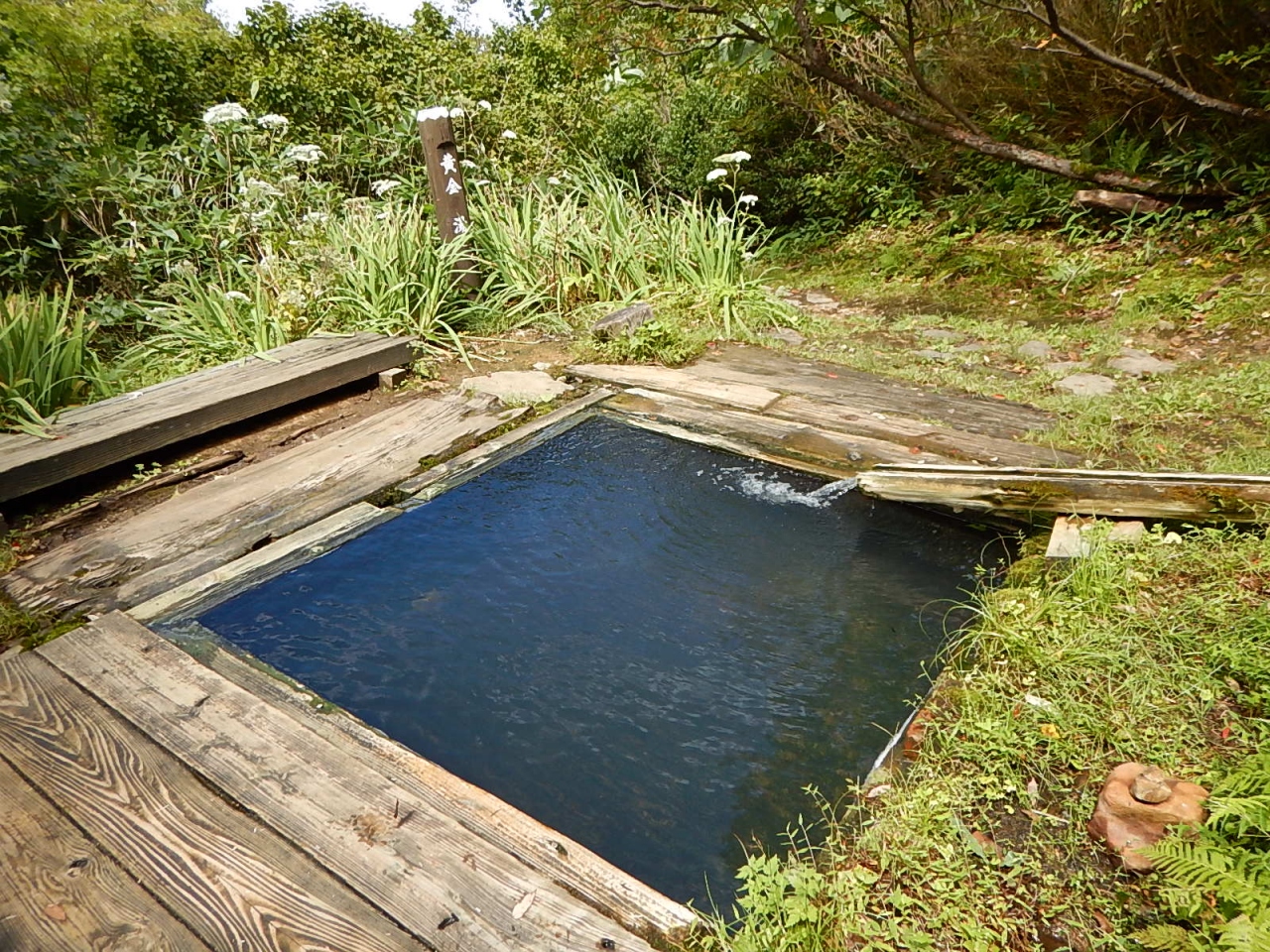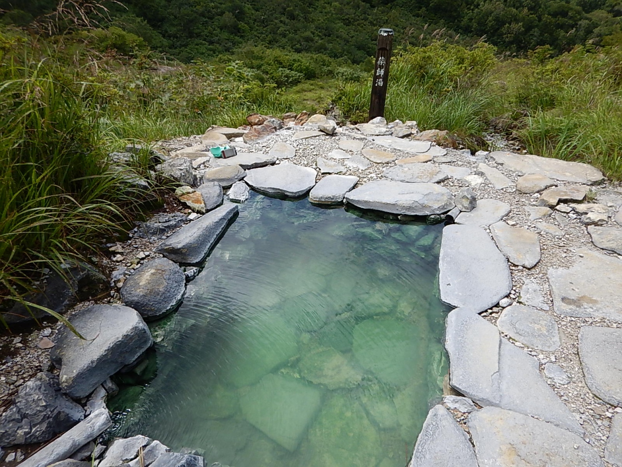 4つの露天風呂からなり、初めに見つけた三国一ノ湯は完全に一人用。湯はぬるめ。