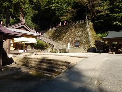 参拝には随神門から2422段の階段をひたすら上っていく方法と、山頂の駐車場まで有料道路を通っていく方法がある。随神門から上る場合、近くに駐車場は複数あるがどこも満車近かった。