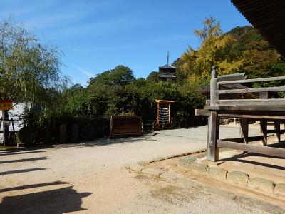 随神門からはしばらく下り階段でスタートする。点在する子社をすぎて、国宝の五重塔までは緩やかな上り階段。
