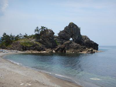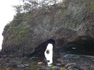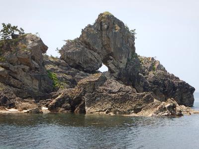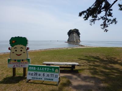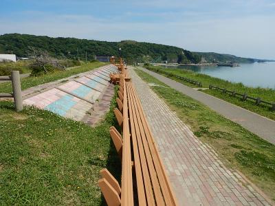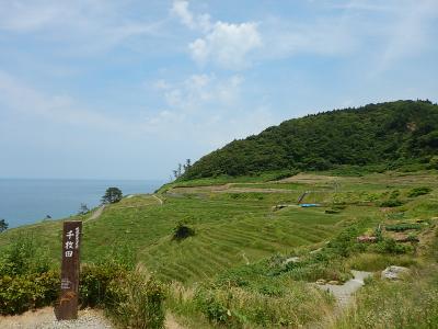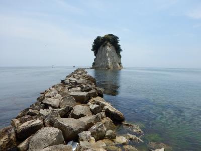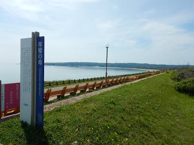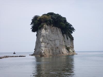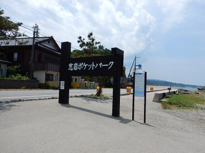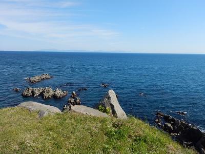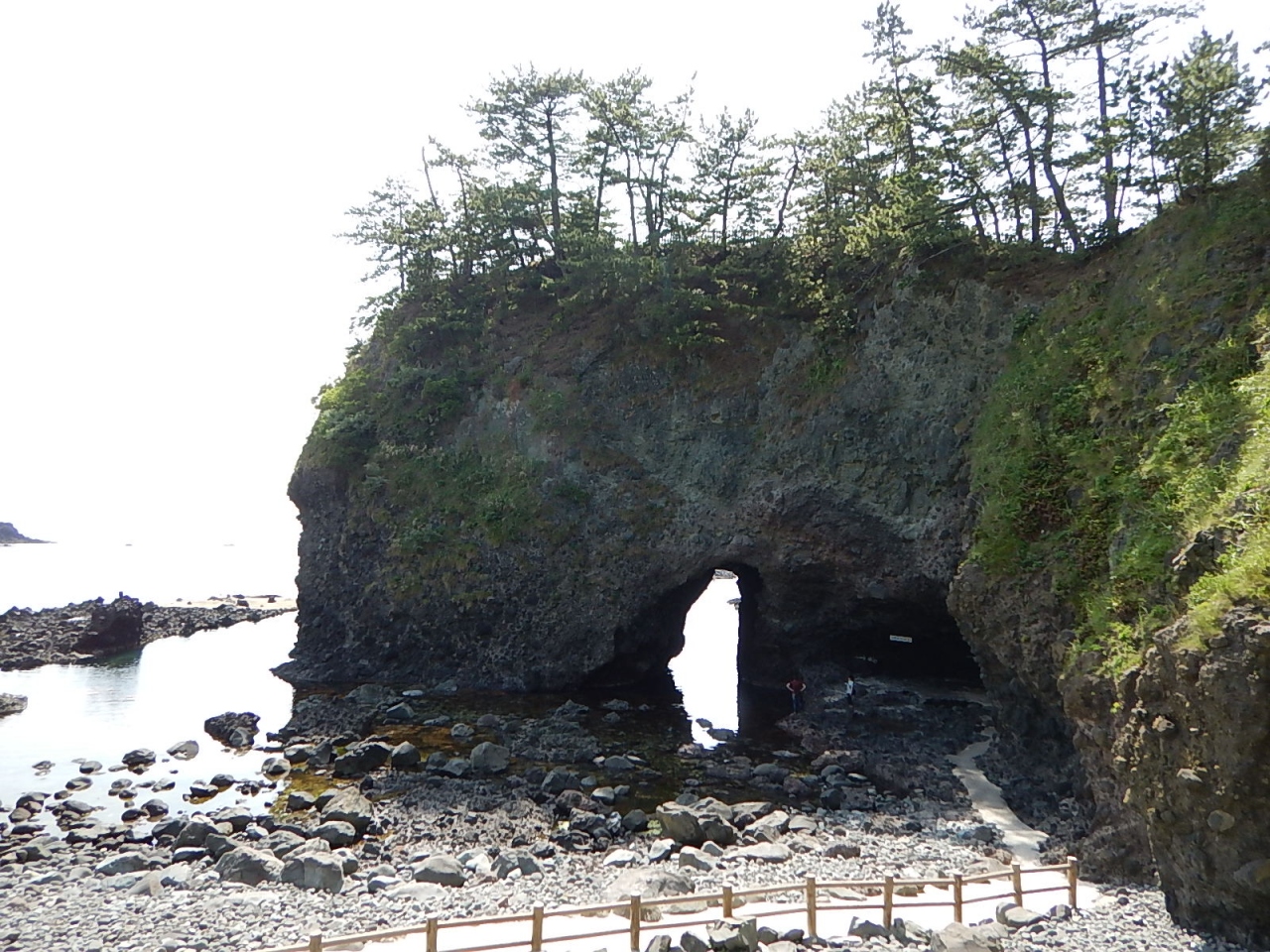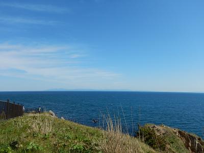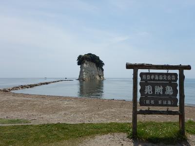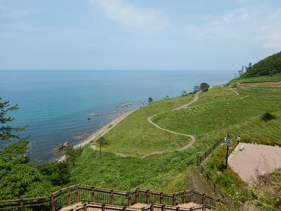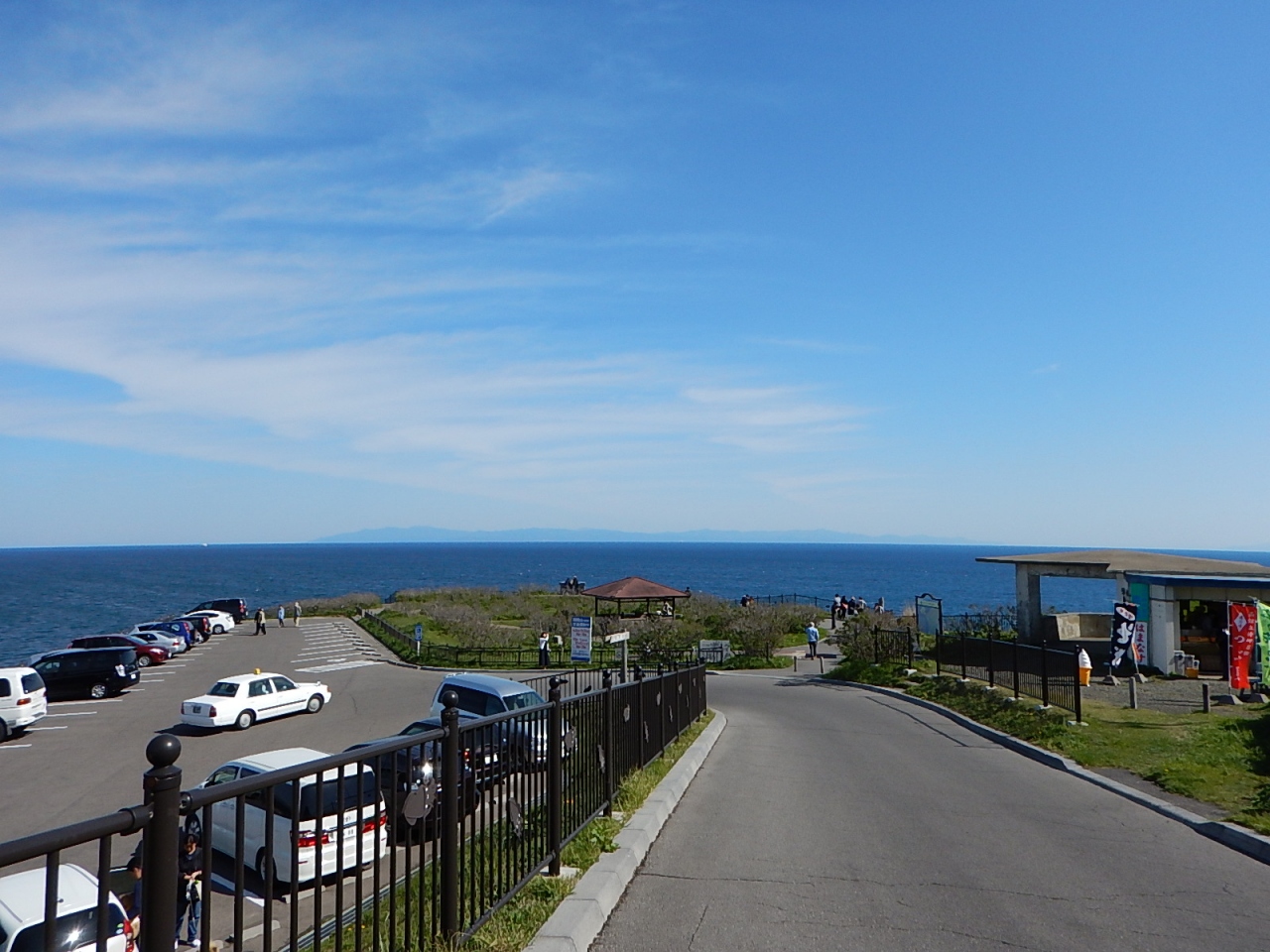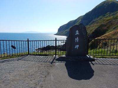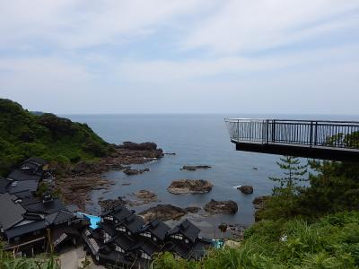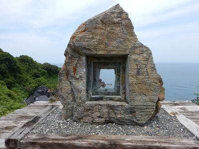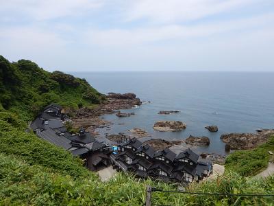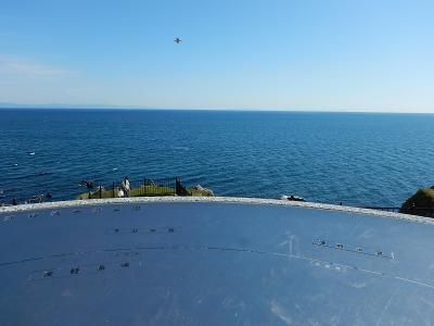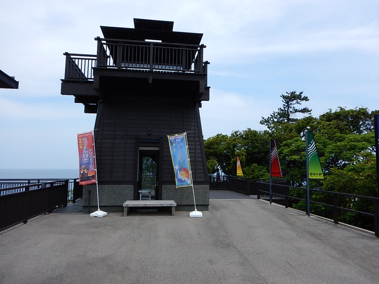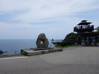 能登半島の突端近く、日本海へと突き出した岬はパワースポットとして有名とのこと。高さ30mの場所にスカイバードと呼ばれる約10mの展望台が伸びていて絶景とスリルを同時に味わえるようである。眼下に見える建物はランプの宿。