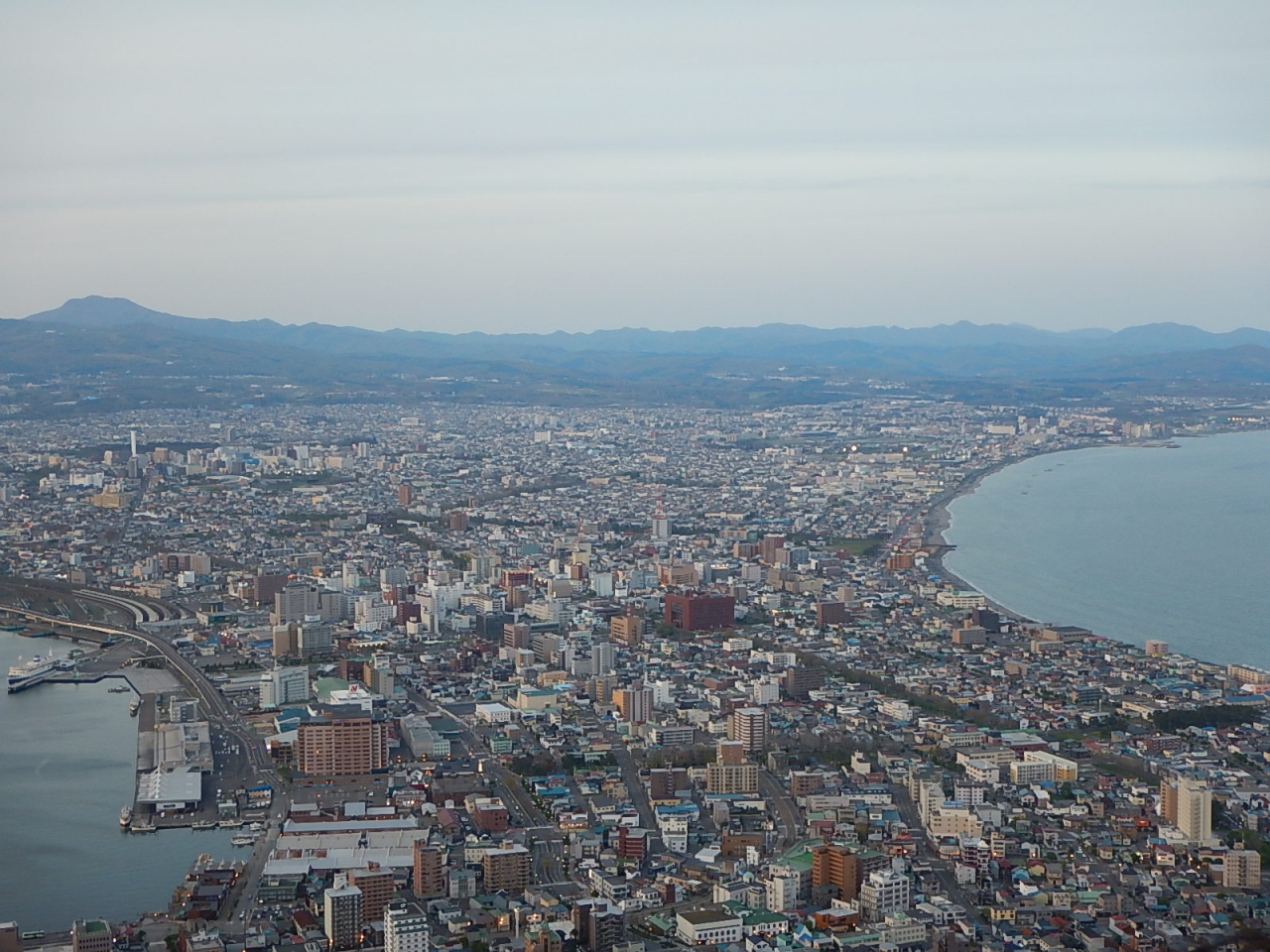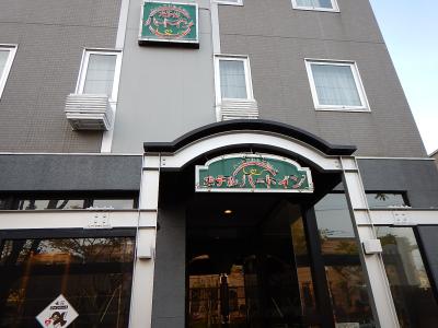 函館駅前にはスマイルホテルや東横インなどの高層のホテルが多いが、こちらは駅から徒歩10分、市役所の向かいにある4階建ての小さなビジネスホテル。入口のネオンサインの看板と併設の雀荘の看板が目印。