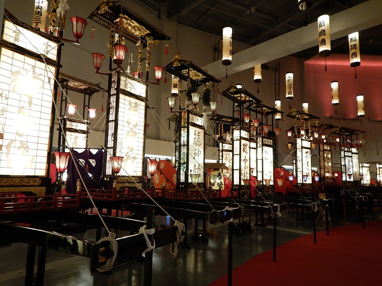 カーナビの案内では閉鎖した旧会館に着いてしまったが、1km程度海の方面へ行った場所に移転している。外観が大きな倉庫のようで少々味気ないが内部はキリコと呼ばれる夏祭で使われる山車が多数展示していてその光景は圧巻である。