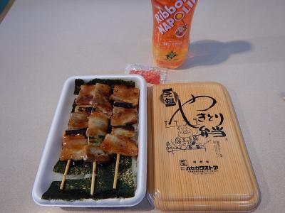 やきとり弁当はサイズと味付を紙に書いてレジに注文。注文を受けてから弁当を作る。ここでは小のタレを注文。甘めのタレは厚めに切った肉(豚肉)とネギによく合い、ご飯がすすむ。
