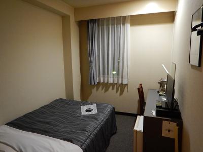部屋はホテル自ら宣言する通り決して広くはないが、トイレはウォシュレット付で、アメニティも一通りそろっており、普通のビジネスホテルとしては十分な設備。Wi-Fiも無料で飛んでいる。- 旅行時期