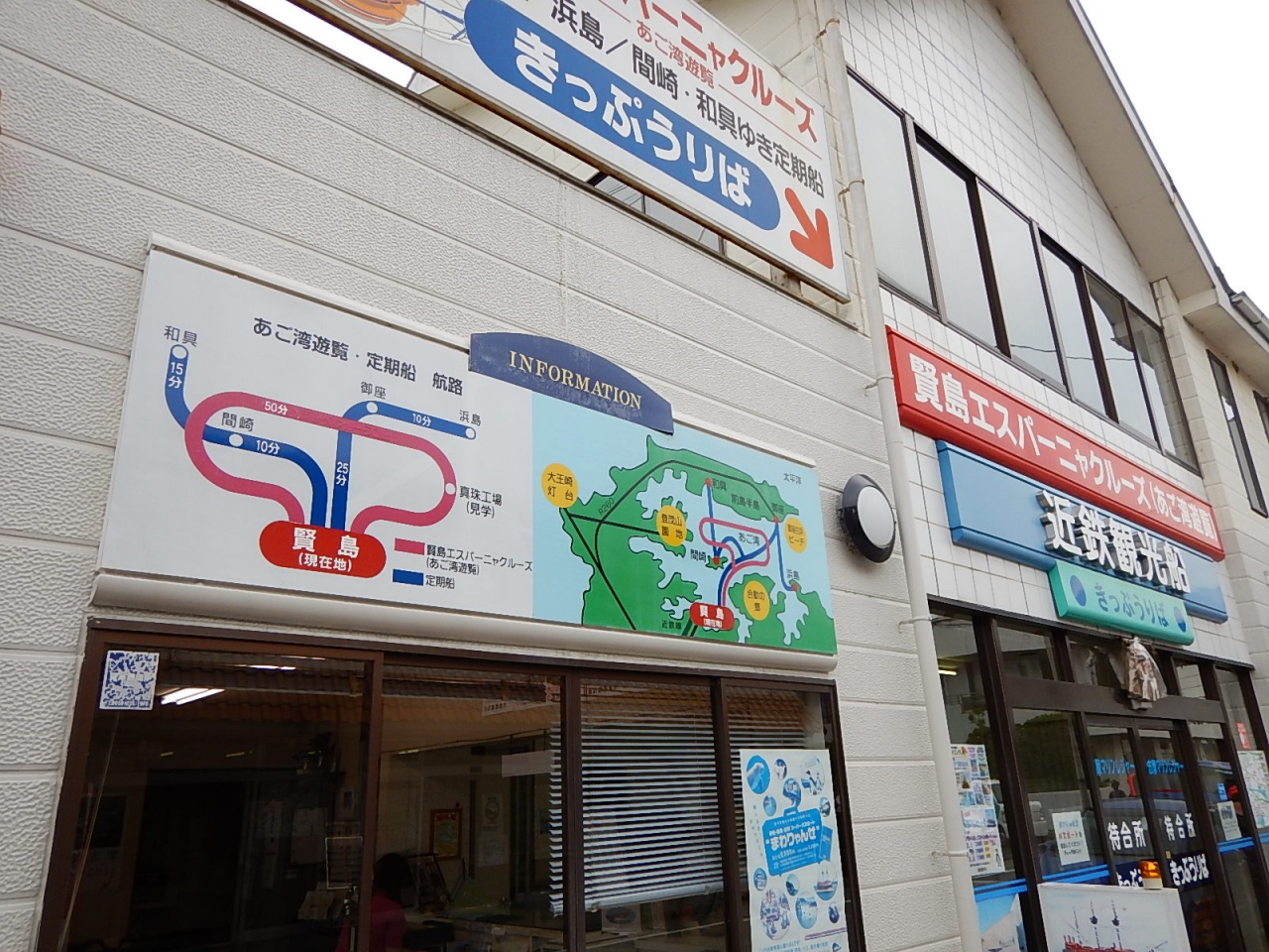 賢島駅からは乗り場までは徒歩数分。駐車場もある。