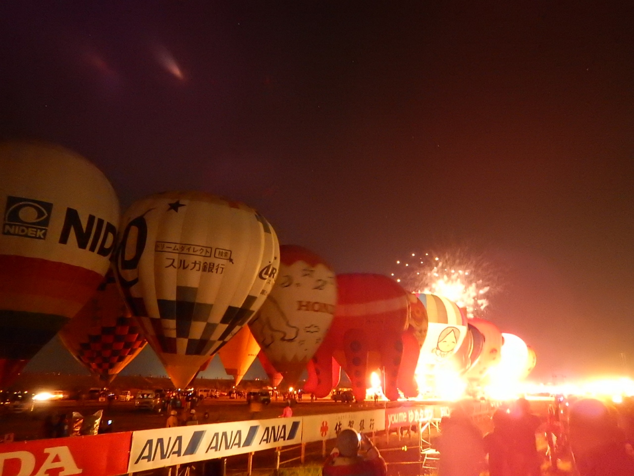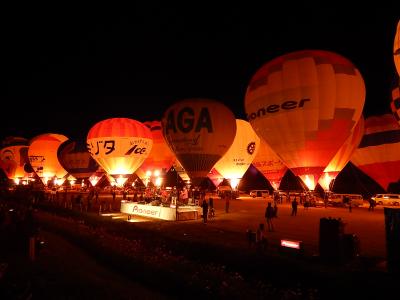 この日は運よく開催になり、バンドの生演奏に合わせてバーナーの炎で球皮が明るく光る光景は本当に幻想的で感動した。- 旅行時期