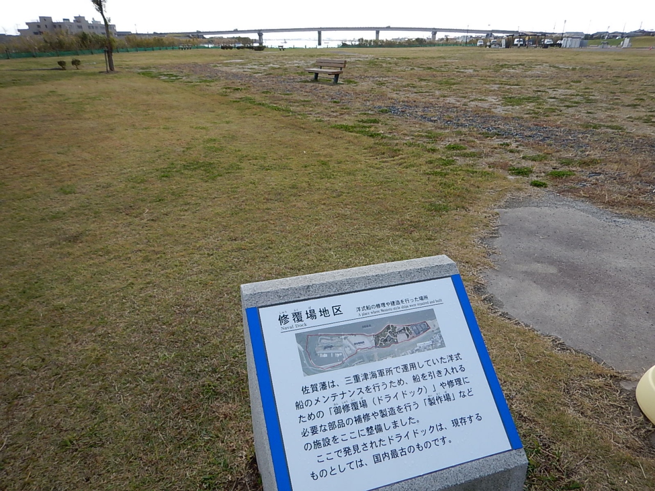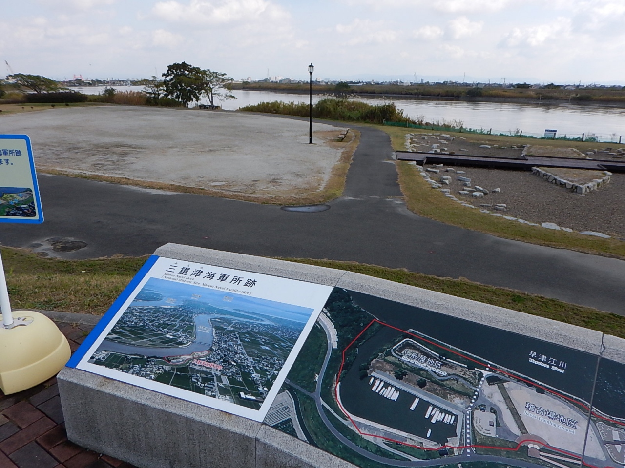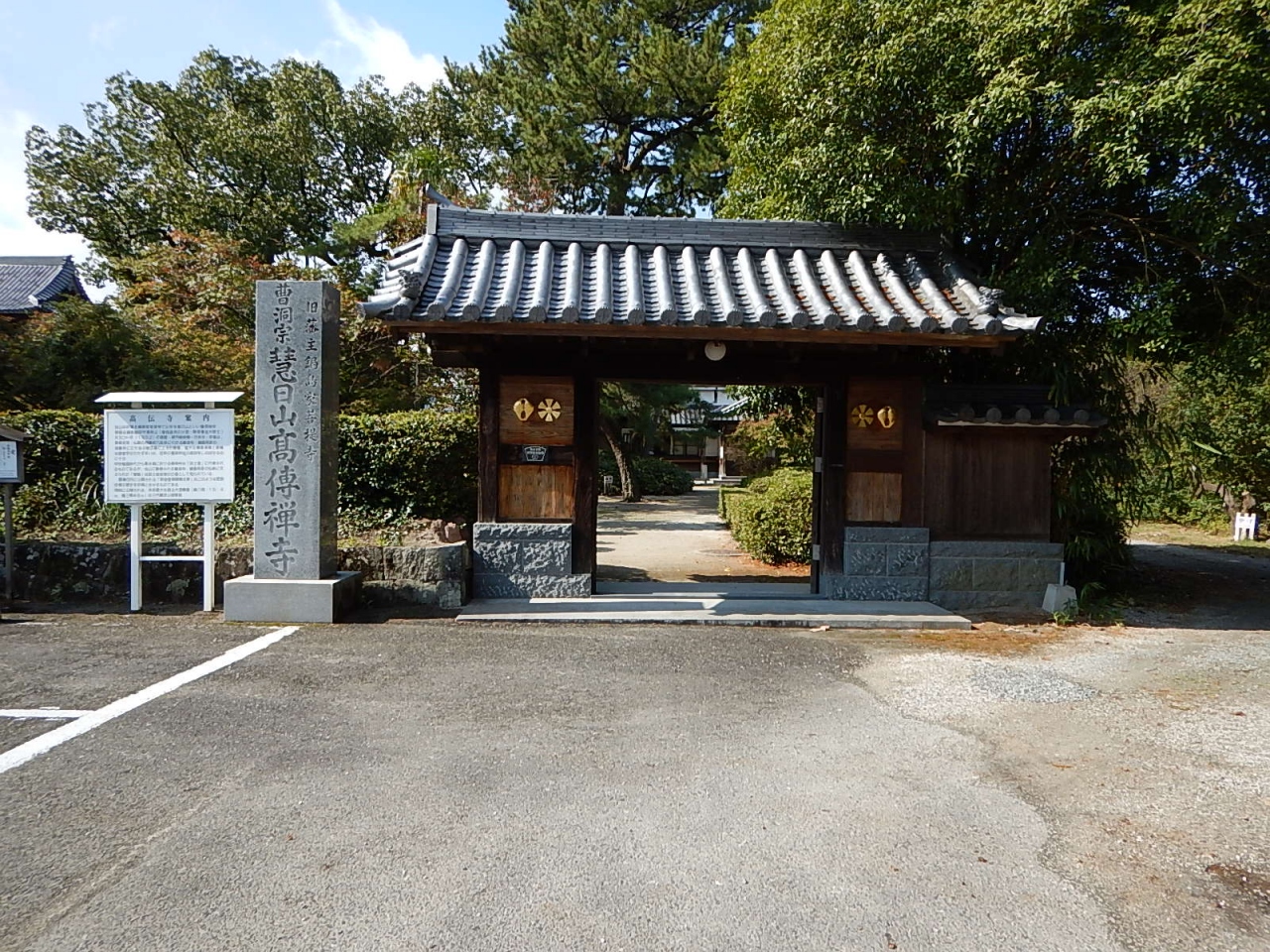 道路向かいに駐車場がある。駐車料金、入場料ともに無料という良心的設定。