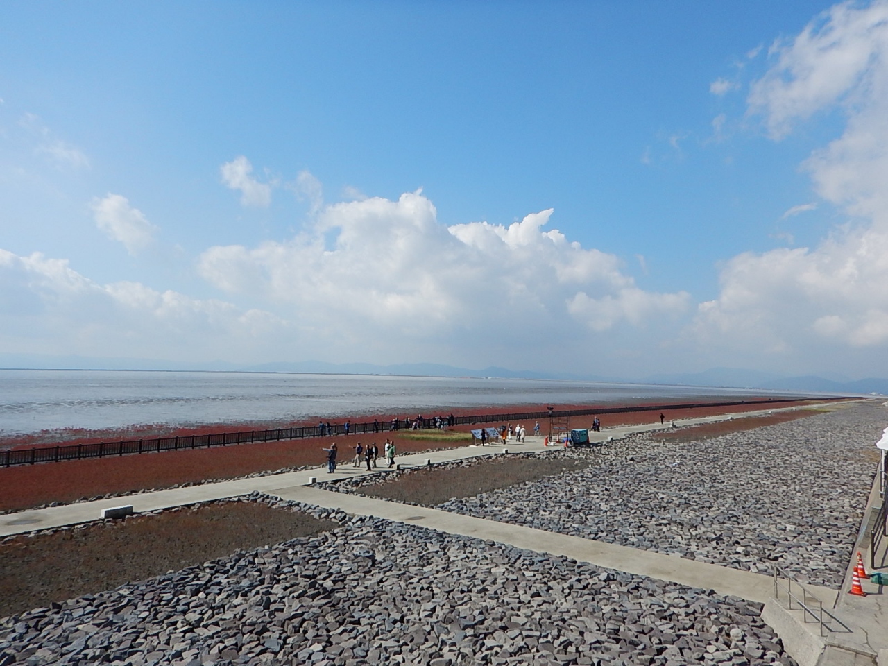 手前に森があるために、少し見えづらいところもあるが、湾というよりもつながった島々の間に海があるような、陸地の方が多いイメージだった。
