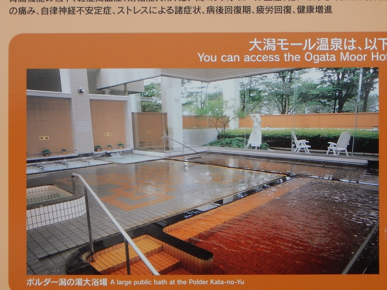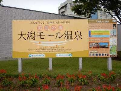 碁盤の目のような道路が延々と続く八郎潟を走ると北西部に住宅が密集する地域に入る。この一角に大潟温泉モール「ポルダー潟の湯」がある。