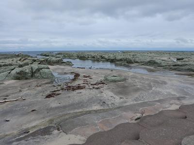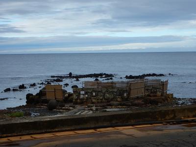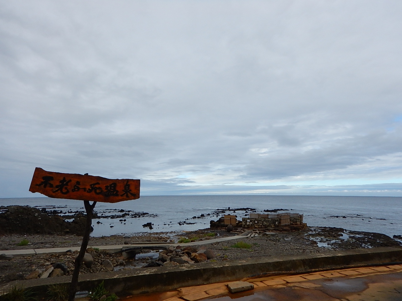 宿泊した能代から日本海側を北へ、56kmで黄金崎不老ふ死温泉に到着。
