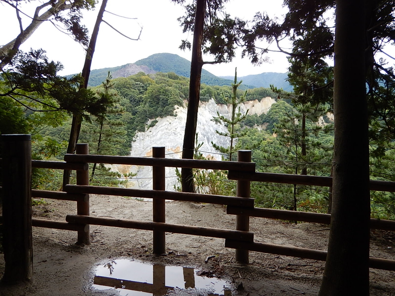 その先は山肌の一部が凝灰岩の露出により白くなっている。