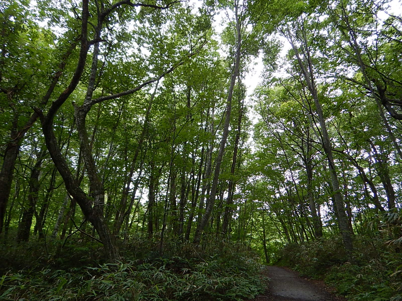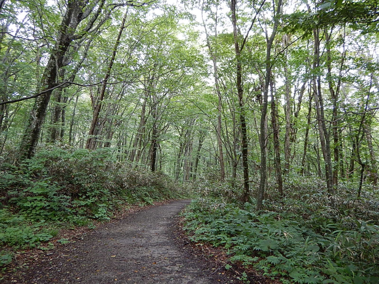 若干湿った道は微妙にカーブを描いており、両脇には高く育ったブナの自然木がたまに枝を無秩序に伸ばしている。吹きぬける涼しい風がとても心地よい。