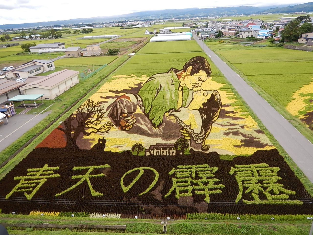 また、青森で新しく開発された米の晴天の霹靂もアートでPR。