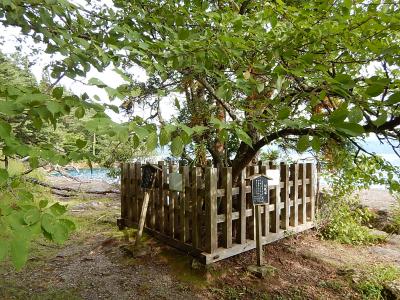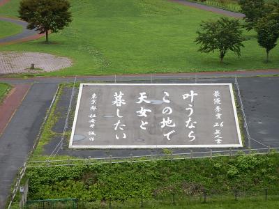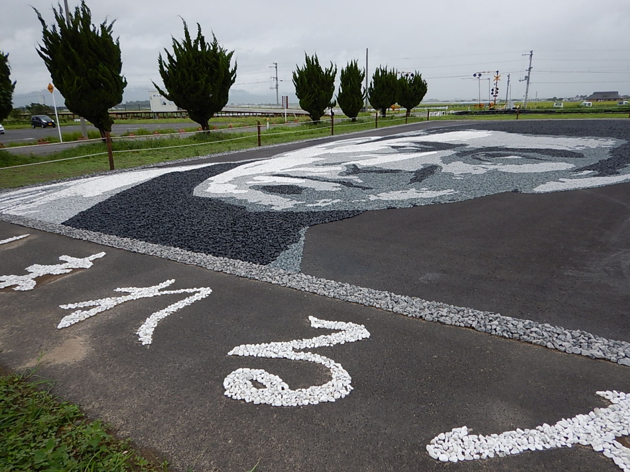 また、ここには別角度には砂利アートの高倉健さんの肖像画や、謎の川柳がある。