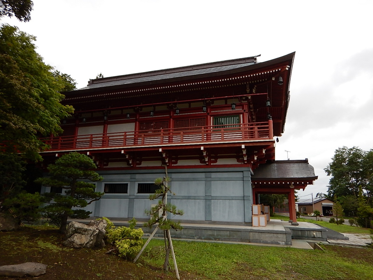 境内に入るとまず朱塗りの極楽橋を渡る。右にある伽藍は高野山青森別院。