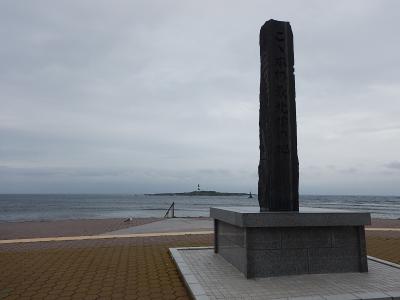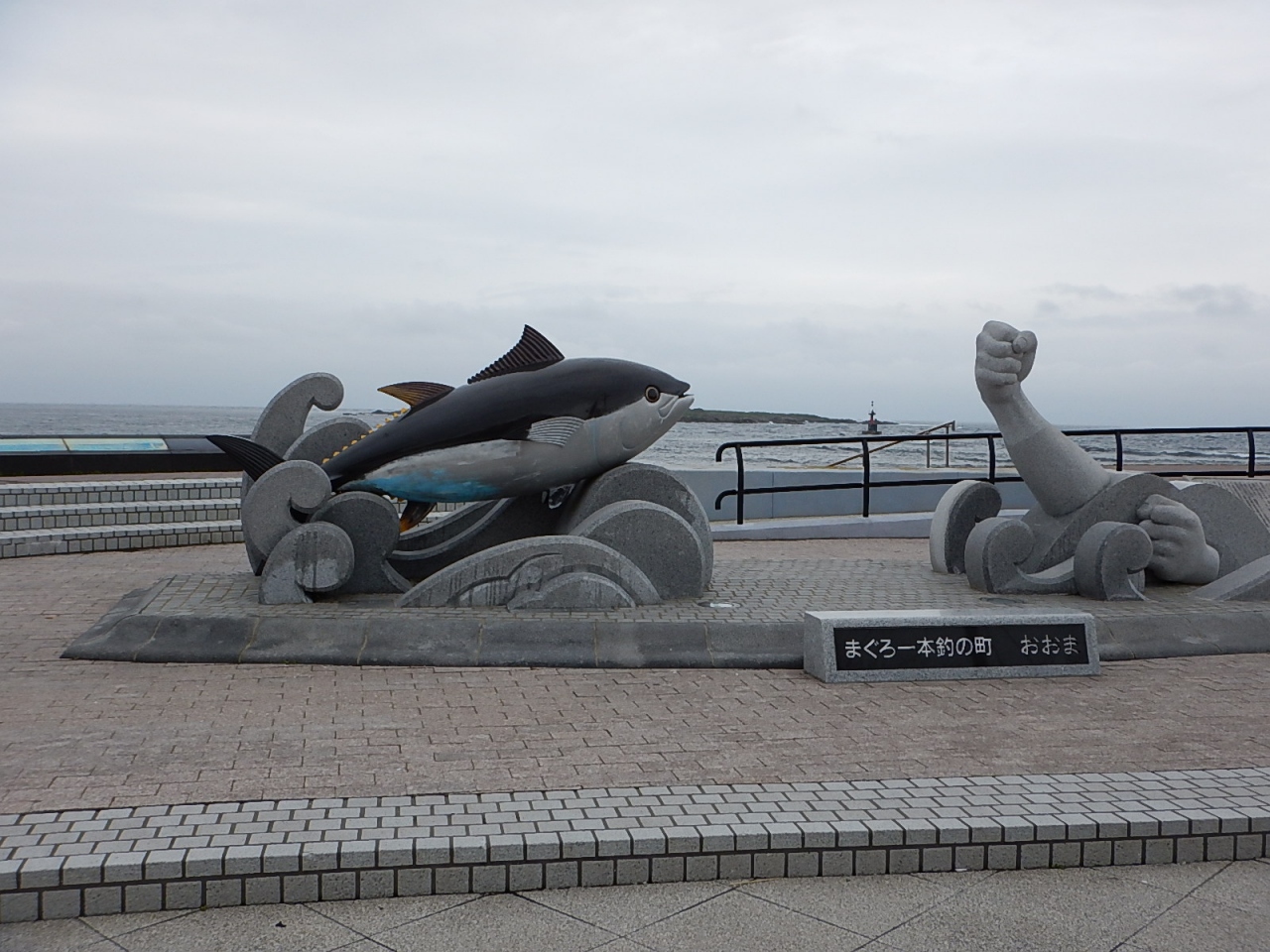 ここはマグロ一本釣りの町として有名で石のオブジェがある。当然記念撮影スポット。