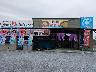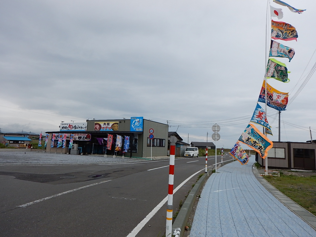 大間埼は観光客用に土産屋や飲食店が立ち並ぶが、幟と派手な看板でひときわ目立つのがこの店。