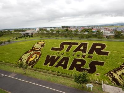 7色の稲でスターウォーズのロゴとキャラクターたちが表現されているのには驚かされる。