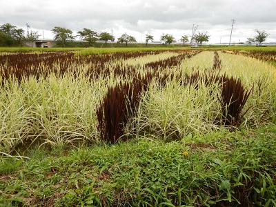 地上に降りてアートの近くに行くと、7色の稲穂がそれぞれ紹介されているのもポイント。