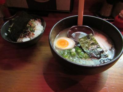スープは牛骨と鳥ガラ、豚骨の合わせとのことで、ややとろみがある。脂が浮いてはいるが意外とあっさりした味。ちぢれ麺もスープによくからみ、おいしく頂いた。- 旅行時期