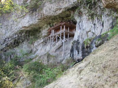 いつも聞こえるのかは分からないが、投入堂の洞窟からは下駄の足音のような不思議な音が響いてきた。