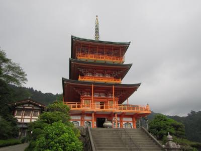 本堂の外観は那智大社と違って侘びた雰囲気だが、少し離れたところにある三重塔は朱塗りできらびやかさがある。