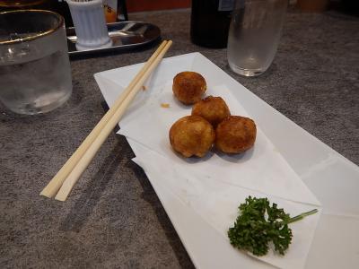 辛子蓮根は珍しくボール状になって揚がっていた。蓮根はすり身になっていて、辛子は弱め。馬刺はその日は上の盛り合わせがあり、結構な量があって美味しかった。もちろん焼酎の品ぞろえも充分。- 旅行時期