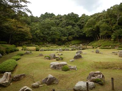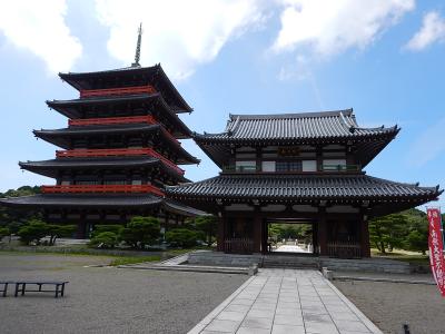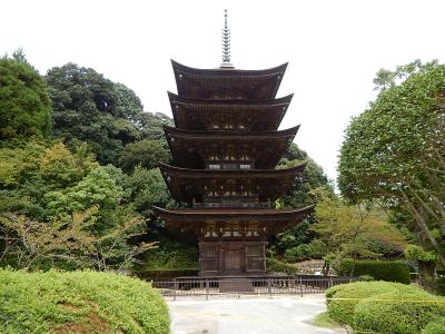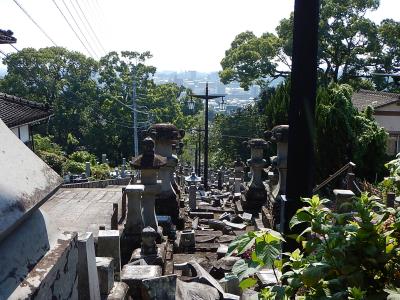 朱の山門と中門のどちらも大きく広い境内が清々しい。黄檗宗の寺院で本堂は大雄宝殿と呼び、山門から中門、大雄宝殿までは一直線である。大雄宝殿の裏から進むと毛利家の墓所があり、周囲は500体もの石塔が並んでおり圧巻である。