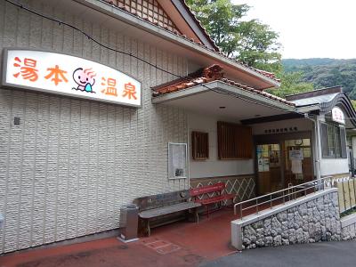 湯本温泉にある立ち寄り湯の一つで、公共駐車場から少し坂を上ったところにある。