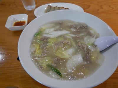 肉飯と餃子を注文。先に餃子が来たが、少し小ぶりな感じ。続いて来た肉飯は、こちらはかなりのボリューム。肉と野菜の入ったあんがご飯に載っているのだが、ラーメンのどんぶり並みの器に入っている。熱くてうまいのでレンゲは進む。食後にデザートのサービスがあったのも嬉しかった。