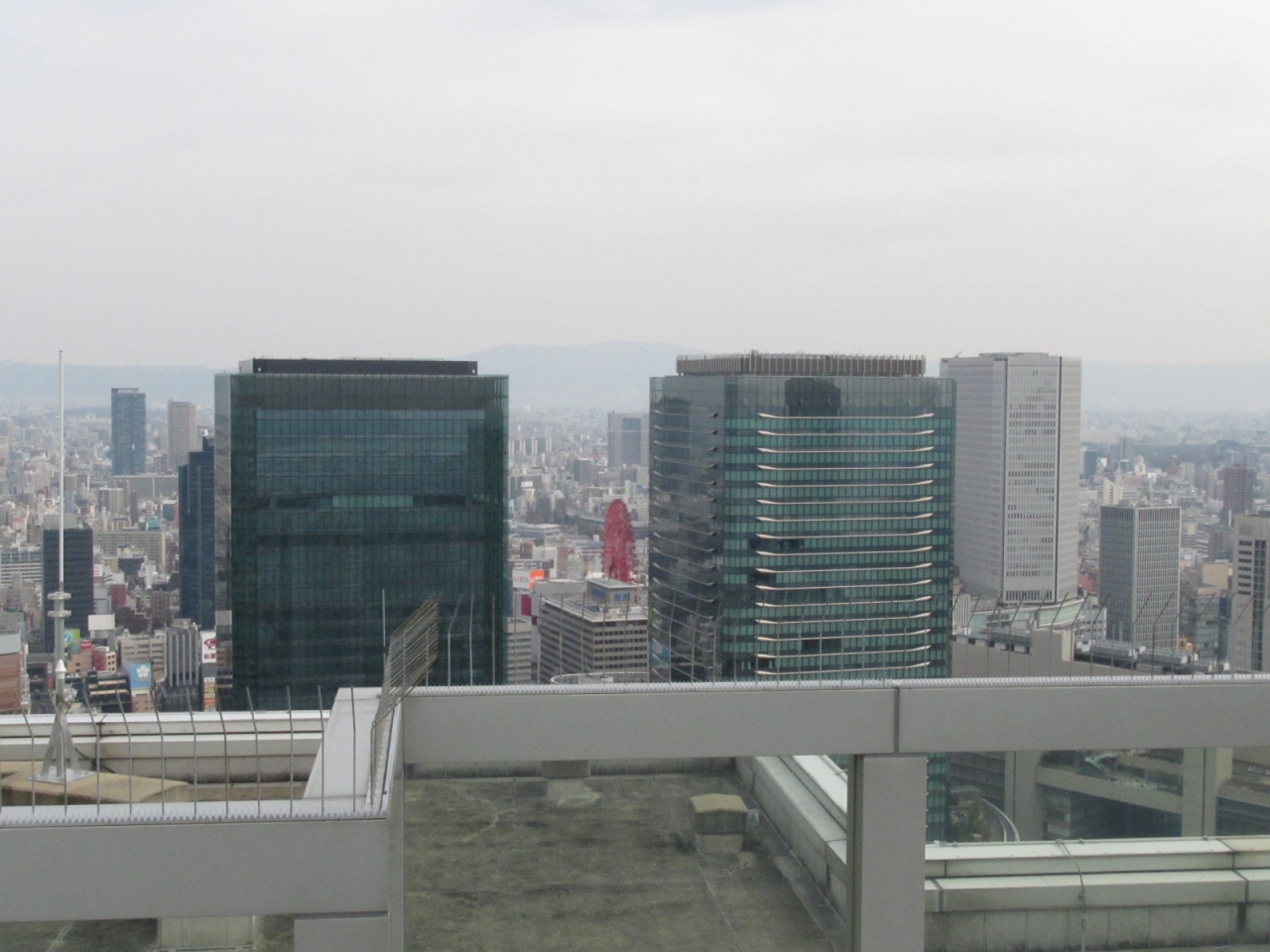 ここで見られる景色は主に梅田の高層ビル群。40階からはほとんどのビルを見下ろす視野になる。