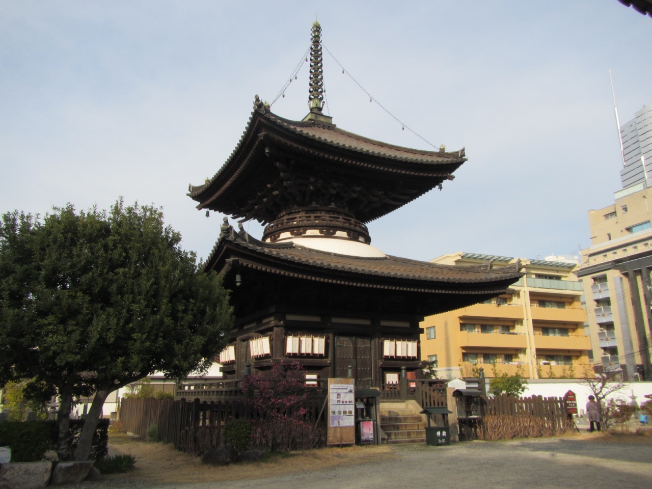 本堂(愛染堂)の奥には大日如来の奉られた多宝塔があり、本堂と多宝塔は重要文化財に指定されている。